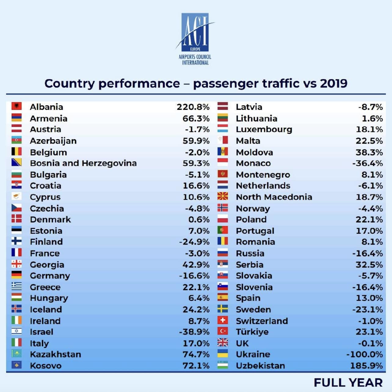 Aeroportul Internațional Chișinău (AIC) a înregistrat, anul trecut, o creștere a traficului de pasageri, fapt prin care și-a consolidat poziția printre cele mai performante aeroporturi europene din categoria sa (1-10 milioane de pasageri anual). Potrivit celui mai recent raport al ACI Europe, Aeroportul Internațional Chișinău a ocupat locul doi în top, cu o creștere de 46% față de 2023, fiind devansat doar de Aeroportul Tirana, care a înregistrat un avans de 47,3%.