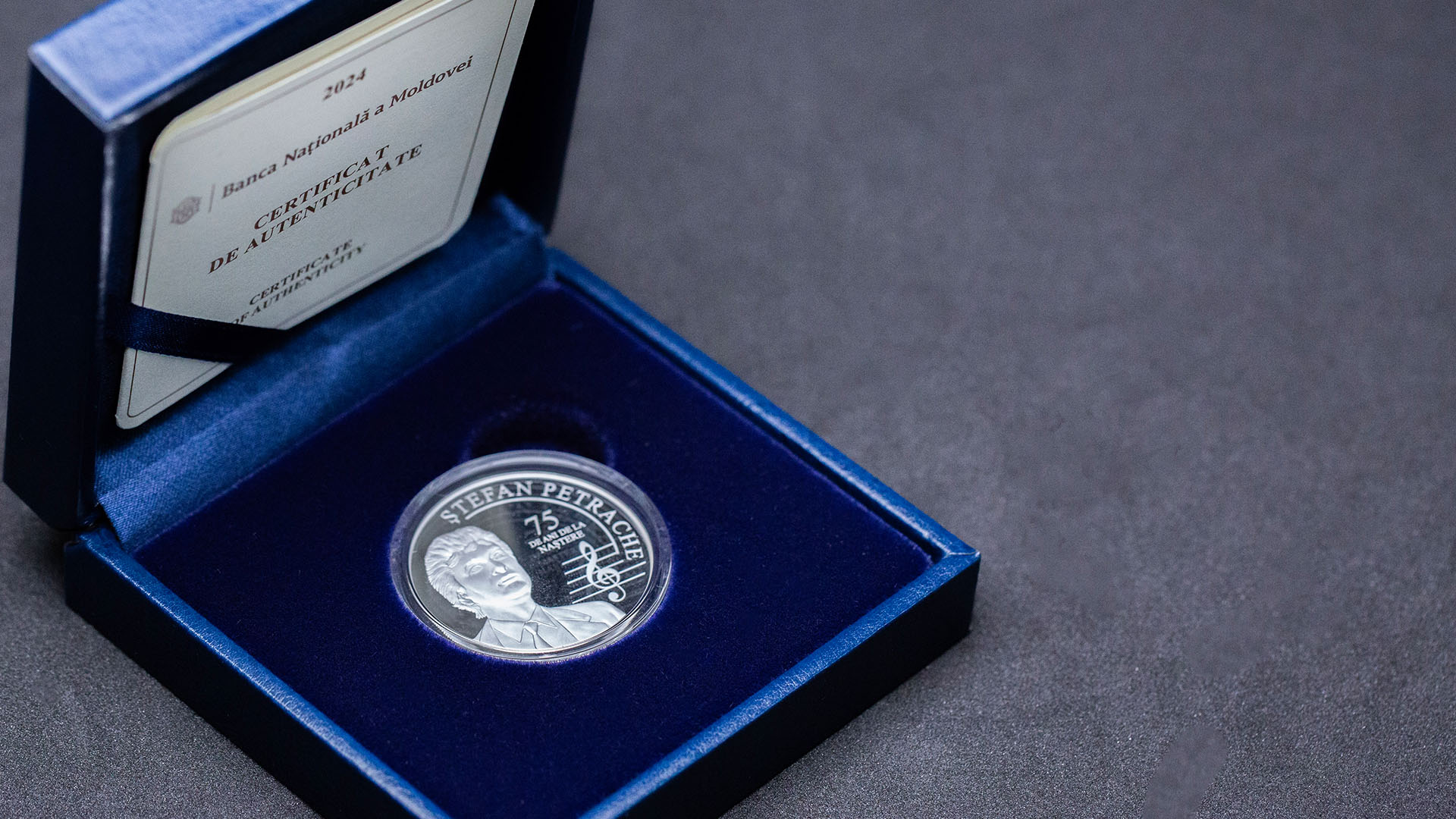 Cea de-a doua monedă este consacrată celor 75 de ani de la nașterea lui Ștefan Petrache – interpret de muzică ușoară, vocalist al formației „Noroc”, solist al formațiilor „Orizont” și „Contemporanul”, conducător al formației „Plai”, care a promovat, prin cântec, limba română și a marcat definitoriu lumea muzicală din perioada anilor ’70-’80.