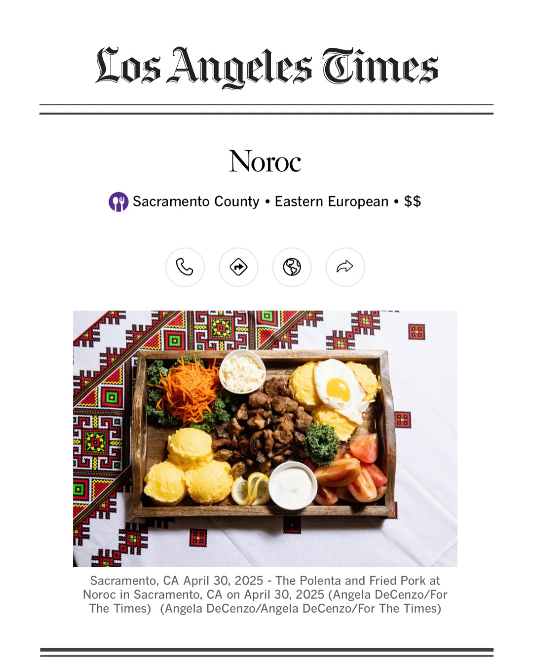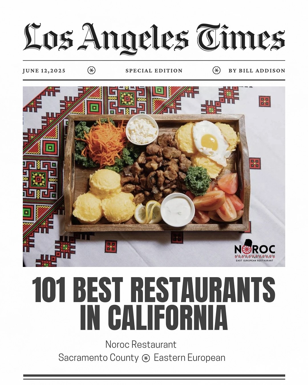 Un colț de Moldova a fost recunoscut oficial pe harta gastronomiei americane. Restaurantul „Noroc” din Sacramento, fondat de o familie originară din Republica Moldova, a fost inclus în top „101 Best Restaurants in California”, realizat de criticul culinar și jurnalistul Bill Addison și publicat în „Los Angeles Times”.