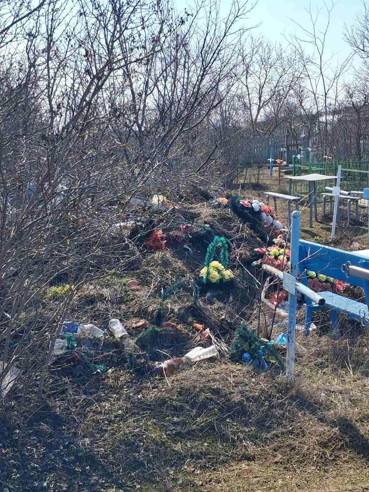 Potrivit Primăriei Talmaza, în cimitir au fost depistate resturi precum crengi, coroane vechi, plastic și alte deșeuri lăsate printre morminte.