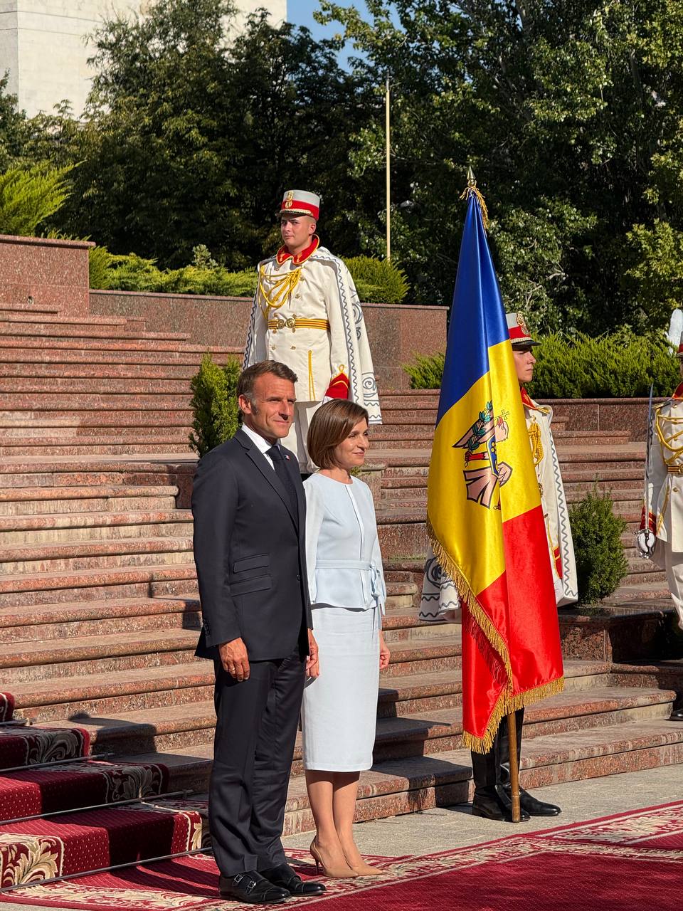 Președintele Franței, Emmanuel Macron, cancelarul Germaniei, Friedrich Merz, și premierul Poloniei, Donald Tusk, au venit la Chișinău de Ziua Independenței. Cei mai puternici lideri europeni au fost întâmpinați la Președinție de șefa statului, Maia Sandu. Oficialii au pășit pe covorul roșu și au fost întâmpinați cu onoruri militare.