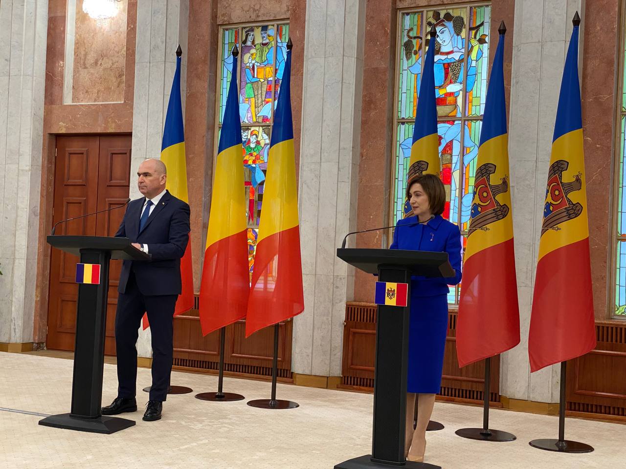 Președintele interimar al României, Ilie Bolojan, a fost astăzi în Republica Moldova, unde a fost întâmpinat la Președinție de șefa statului, Maia Sandu. Cei doi lideri au susținut o conferință de presă comună, în care au subliniat relația strânsă dintre cele două state și sprijinul constant al României pentru parcursul european al Republicii Moldova.