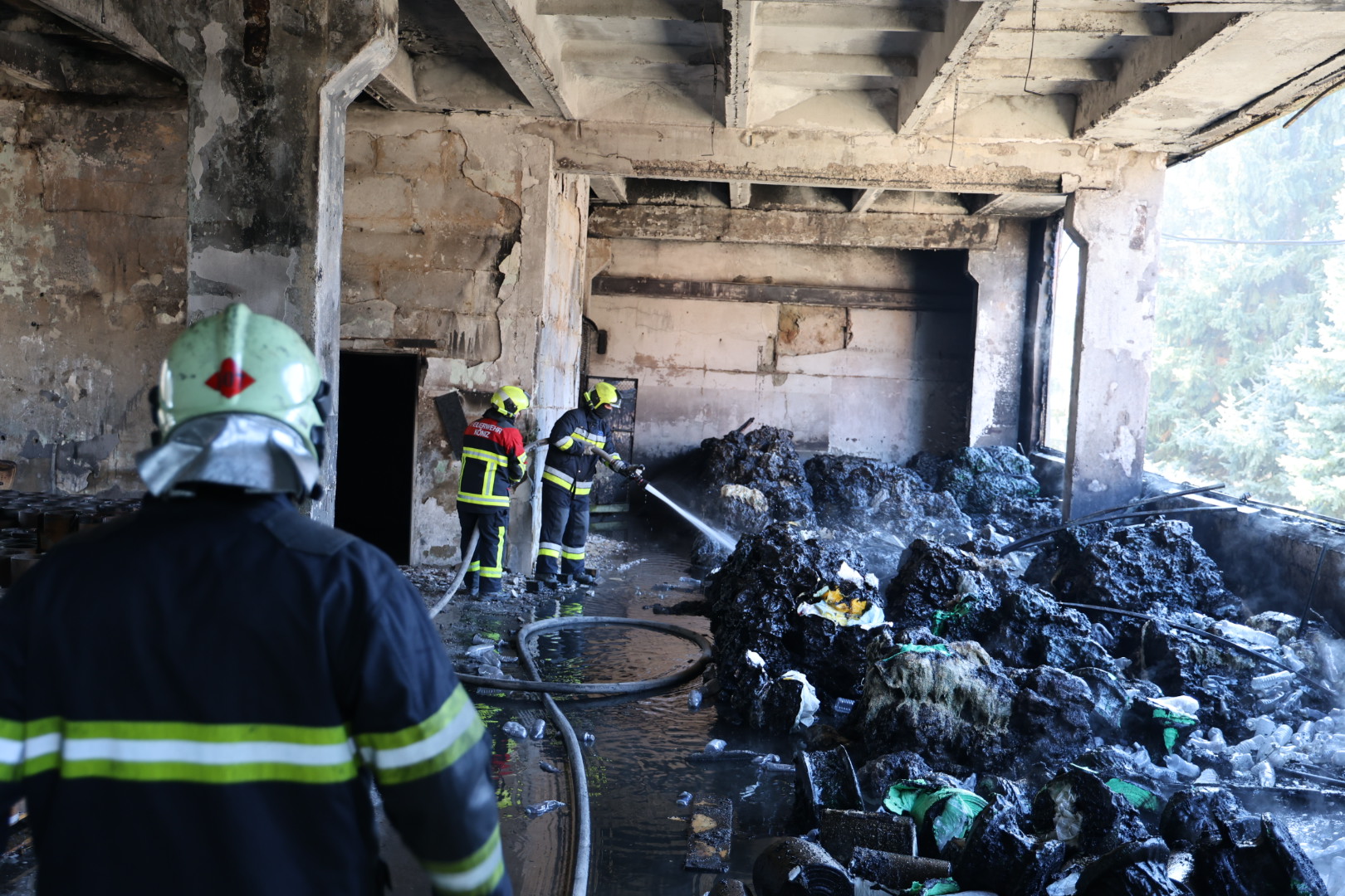 Flăcările au cuprins o încăpere de aproximativ 80 m² de la primul etaj al unei clădiri cu trei nivele, unde erau depozitați saci cu plastic. Din cauza pericolului de extindere, șapte echipe de salvatori au fost trimise la fața locului, însă după o evaluare a situației, patru echipe au fost suficiente pentru a gestiona incendiul.