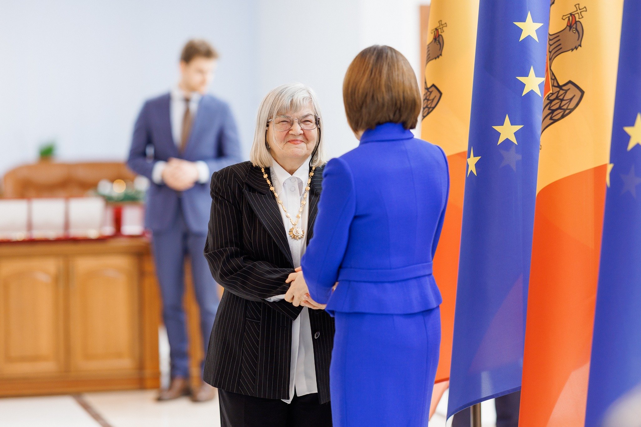 Președinta Maia Sandu a conferit distincții de stat mai multor personalități care s-au remarcat prin profesionalism, integritate și dedicare în activitatea lor. Șefa statului a declarat că puterea Republicii Moldova se regăsește, în primul rând, în oamenii săi.