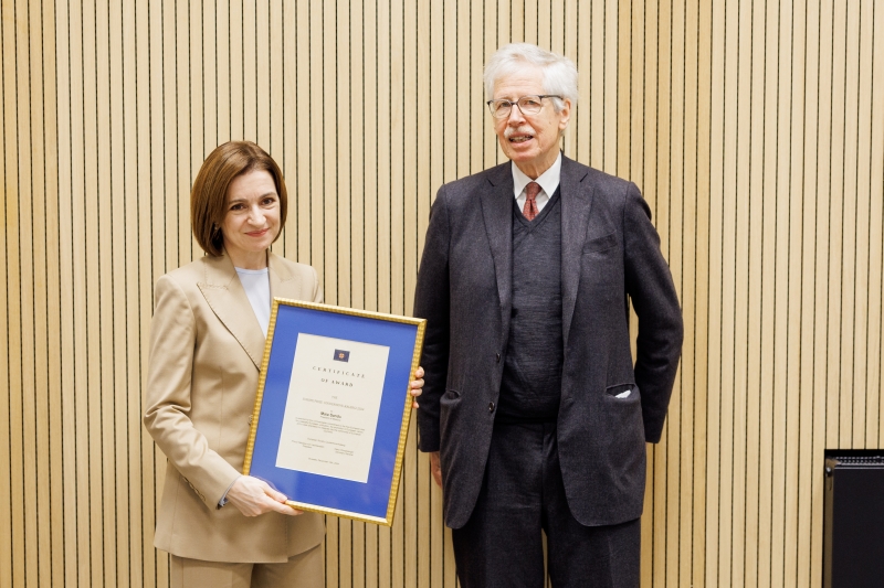 „Acest premiu nu este despre mine, ci despre oamenii Moldovei, care aleg democrația, care muncesc pentru o societate dreaptă și au arătat lumii întregi că locul nostru este în familia europeană”, a declarat șefa statului.