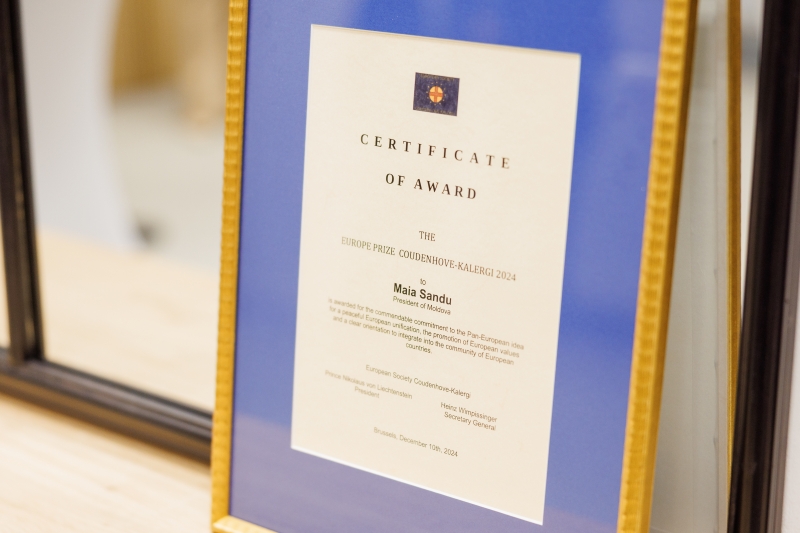 Maia Sandu a primit la Bruxelles Premiul European „Richard Coudenhove-Kalergi”, în semn de recunoaștere pentru eforturile sale de a promova unitatea europeană, democrația și valorile comune. Distincția, inspirată de viziunea fondatorului Uniunii paneuropene, a fost acordată anterior unor lideri de prestigiu precum Angela Merkel, Jean-Claude Juncker, Klaus Iohannis și Donald Tusk.