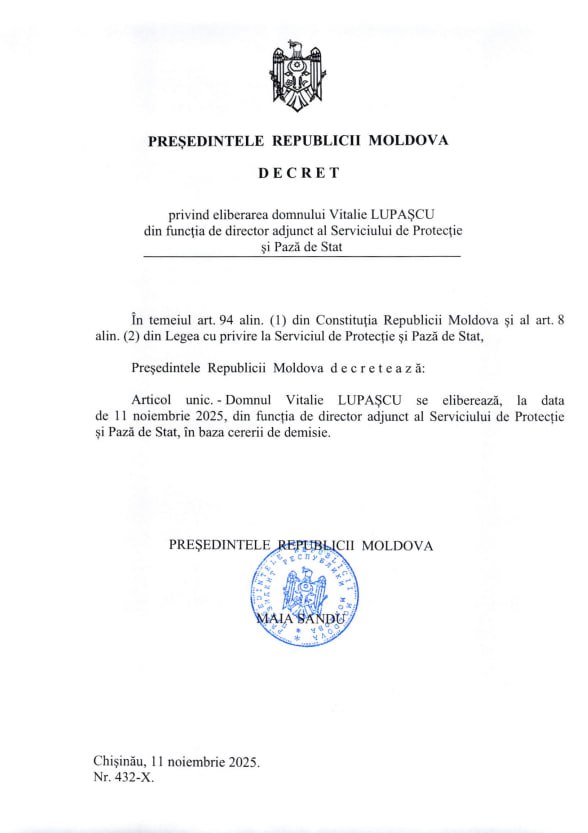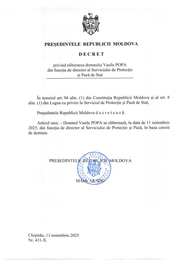 Șeful Serviciului de Protecție și Pază de Stat, Vasile Popa, și adjunctul său, Vitalie Lupașcu, au fost eliberați din funcție. Maia Sandu a semnat decretele.