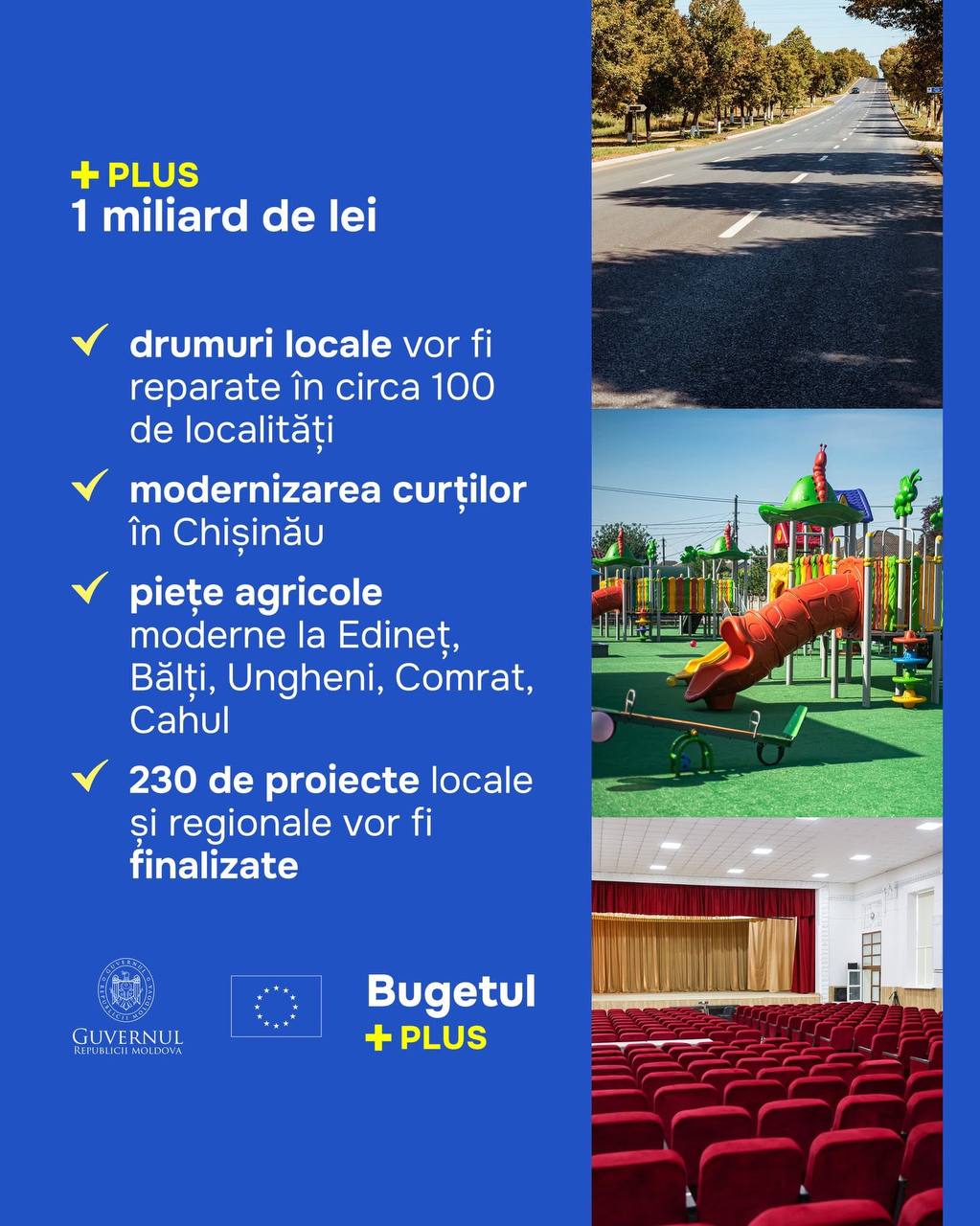 A doua dimensiune a bugetului vizează dezvoltarea economică. Un miliard de lei va fi alocat pentru reparația drumurilor locale în aproximativ 100 de localități, precum și pentru modernizarea curților în Chișinău și a piețelor agricole regionale din Edineț, Bălți, Ungheni, Comrat și Cahul.