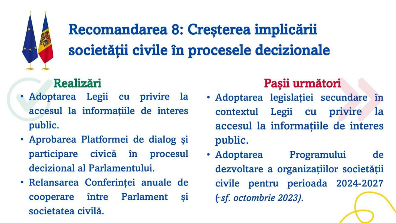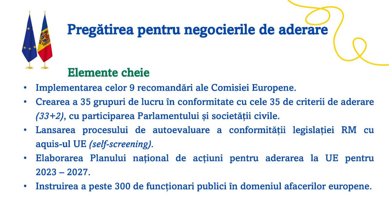 Ministerul Afacerilor Externe și Integrării Europene al Republicii Moldova a prezentat realizările în procesul de integrare în Uniunea Europeană. Totodată, autoritățile au anunțat și pașii următori care trebuie întreprinși pentru asta.