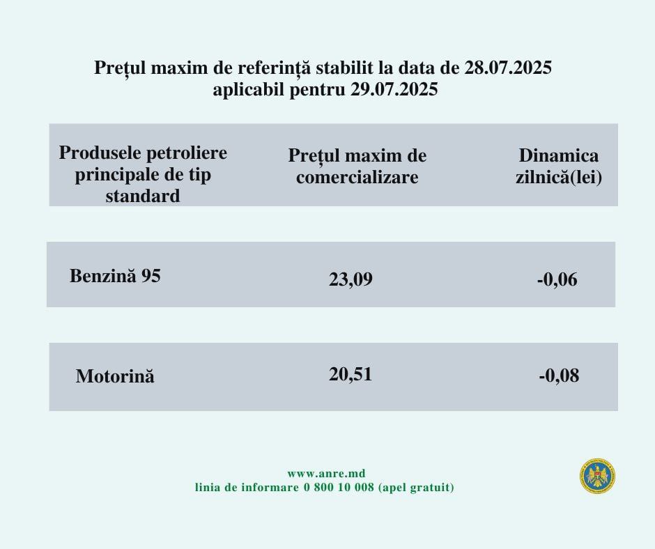 Motorina și benzina se ieftinesc. Agenția Națională pentru Reglementare în Energetică (ANRE) a stabilit noi prețuri la carburanți pentru 29 iulie.