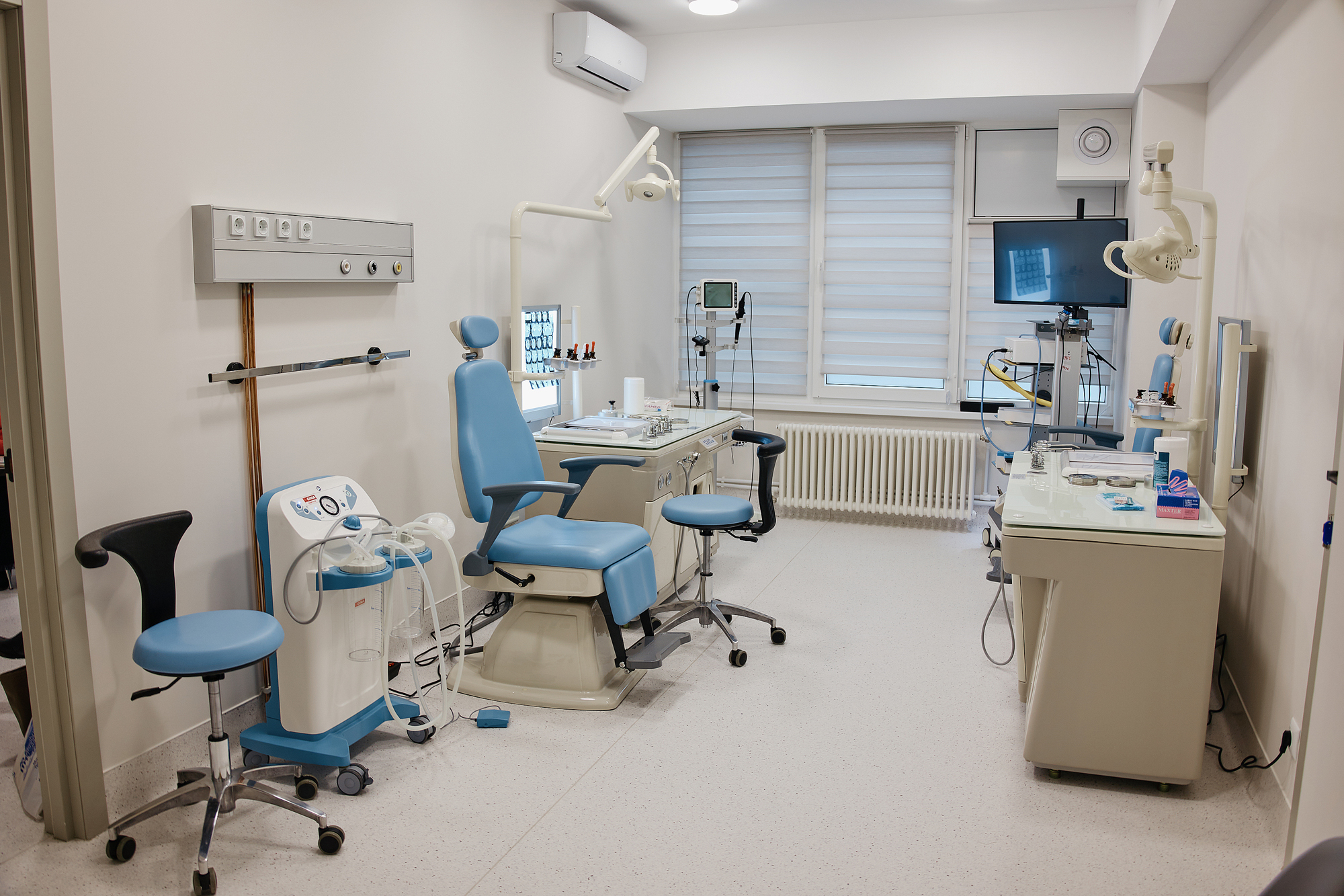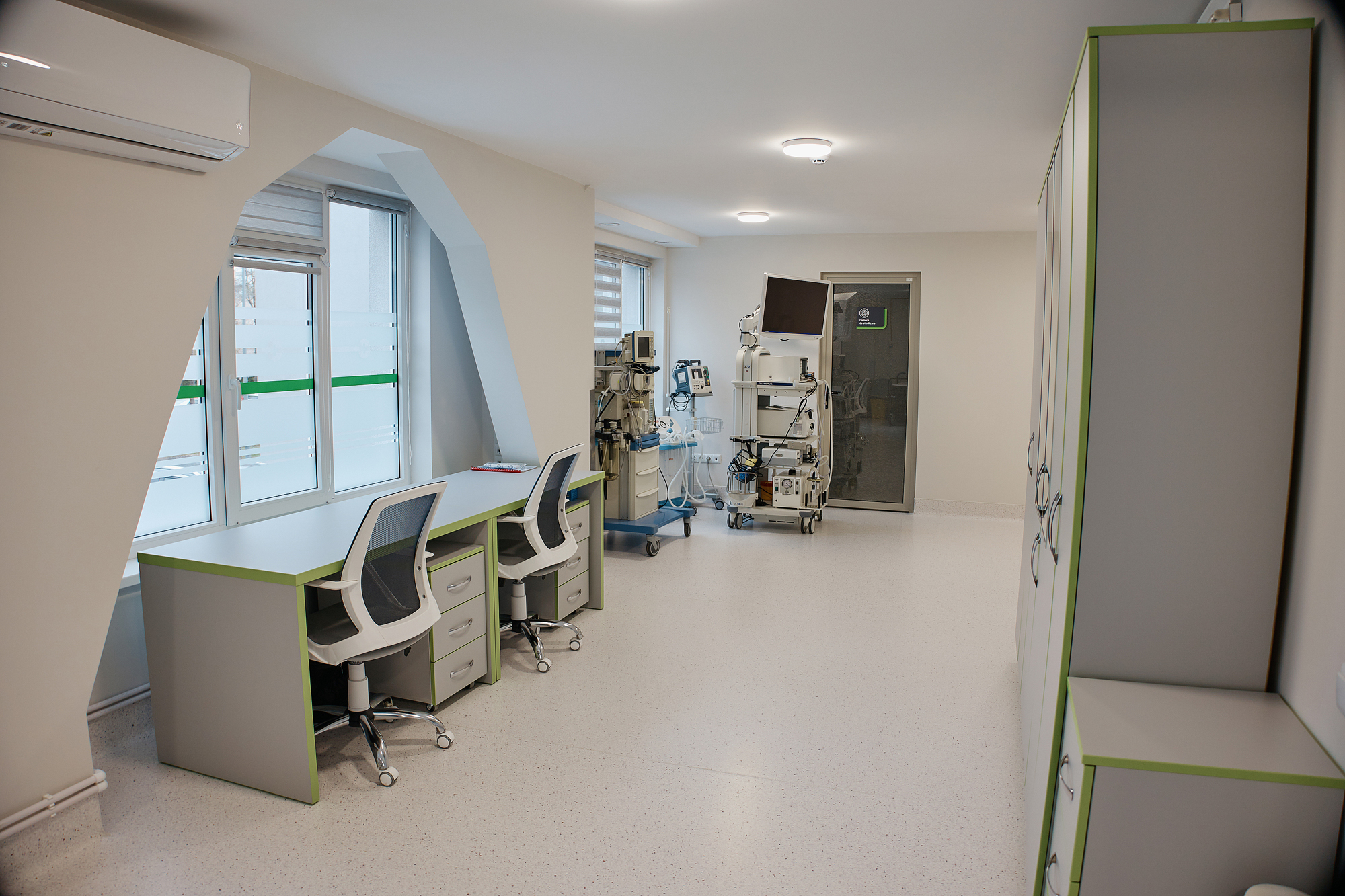 Clădirea are patru niveluri, fiecare destinat unor servicii specifice. La primul etaj sunt cabinetele pentru investigații funcționale și imagistice. La al doilea etaj este un compartiment izolat pentru investigații endoscopice. La al treilea, sunt cabinetele medicilor chirurgi și o sală modernă de pansamente. La ultimul etaj, pacienții primesc consultații în domeniul medicinei interne.