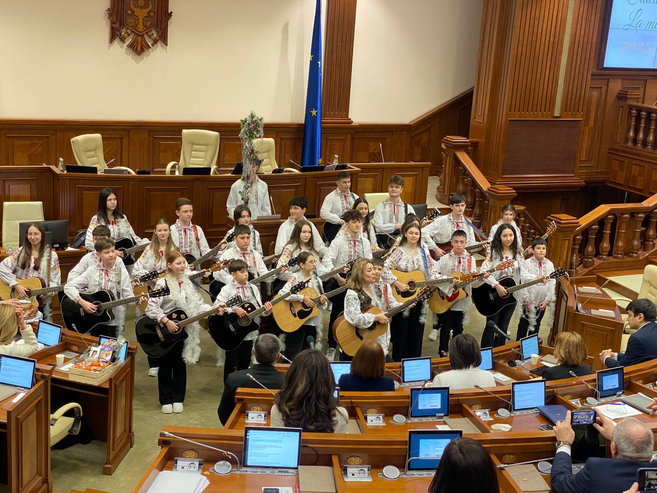 Ulterior, deputații au fost colindați de către grupul de chitariști „UnFolk” din Ungheni, condus de Aliona Leșanu.