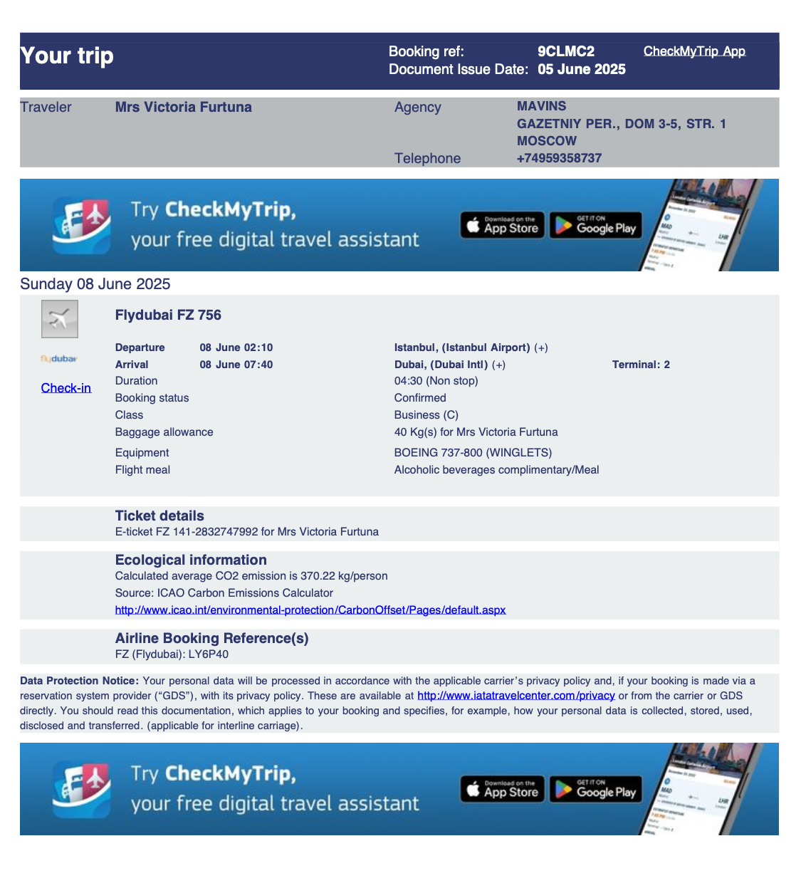 Conform biletelor de avion ajunse în posesia ONE TV, în perioada 8–12 iunie, Victoria Furtună a fost în Dubai, unde a ajuns cu escală la Istanbul, zburând la clasa business. Potrivit prețurilor actuale, un bilet la clasa business din Istanbul până la Dubai costă în jur de 1.000 de dolari, iar tariful unui bilet la aceeași categorie, de la Chișinău până la Istanbul, începe de la 600 de dolari. Cazarea pentru o noapte într-un hotel de patru-cinci stele variază între 300 și 400 de dolari. Astfel, potrivit unor calcule estimative, aceasta ar fi cheltuit cel puțin 4.000 de dolari pentru această deplasare în străinătate.