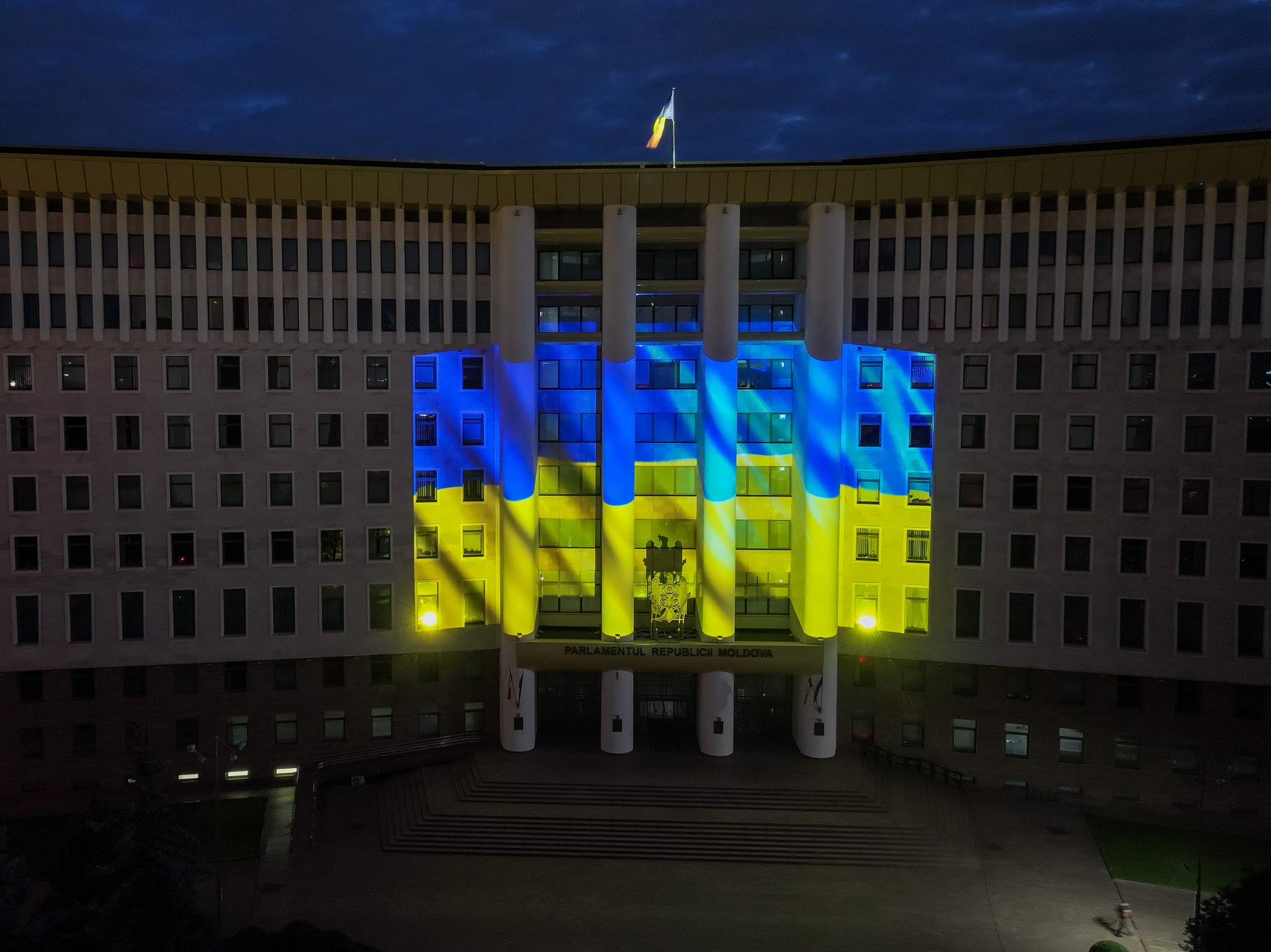De asemenea, în ajunul Zilei Independenței Ucrainei, clădirea Parlamentului Republicii Moldova a fost iluminată în culorile drapelului ucrainean, în semn de solidaritate cu țara vecină.