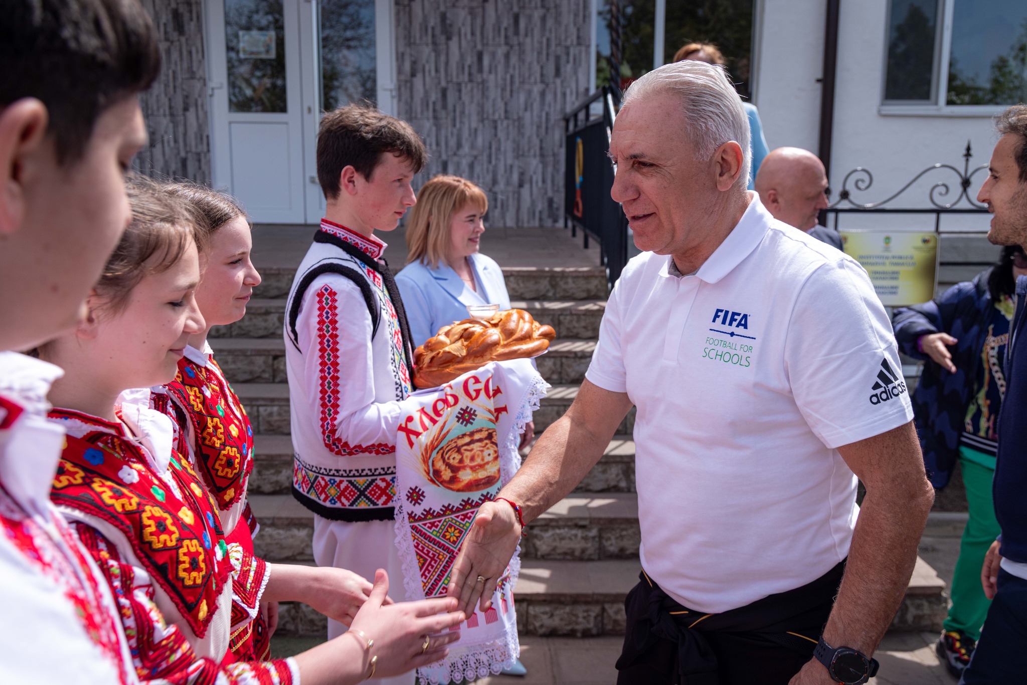 HRISTO STOICHKOV, legenda fotbalului mondial: „Vreau să mulțumesc întregii noastre comunități din Taraclia. Vedeți cât de multe se fac pentru voi. Vedeți cât de multe terenuri noi sunt construite în școli. Aș vrea să-mi exprim recunoștința specială față de ambasadoarea noastră, care, în ciuda faptului că este în Moldova de doar 2 ani, ajută prin cunoștințele și contactele ei. Aș dori să îi mulțumesc lui Plamen Milanov pentru ceea ce face. De asemenea, aș vrea să-i mulțumesc președintelui Federației Moldovenești de Fotbal – este o persoană unică. Pentru că, este important pentru dezvoltarea voastră pe aceste terenuri de sport. Eu nu vreau să văd copii cu telefoane, cu tatuaje. Eu nu am tatuaje, să știți”